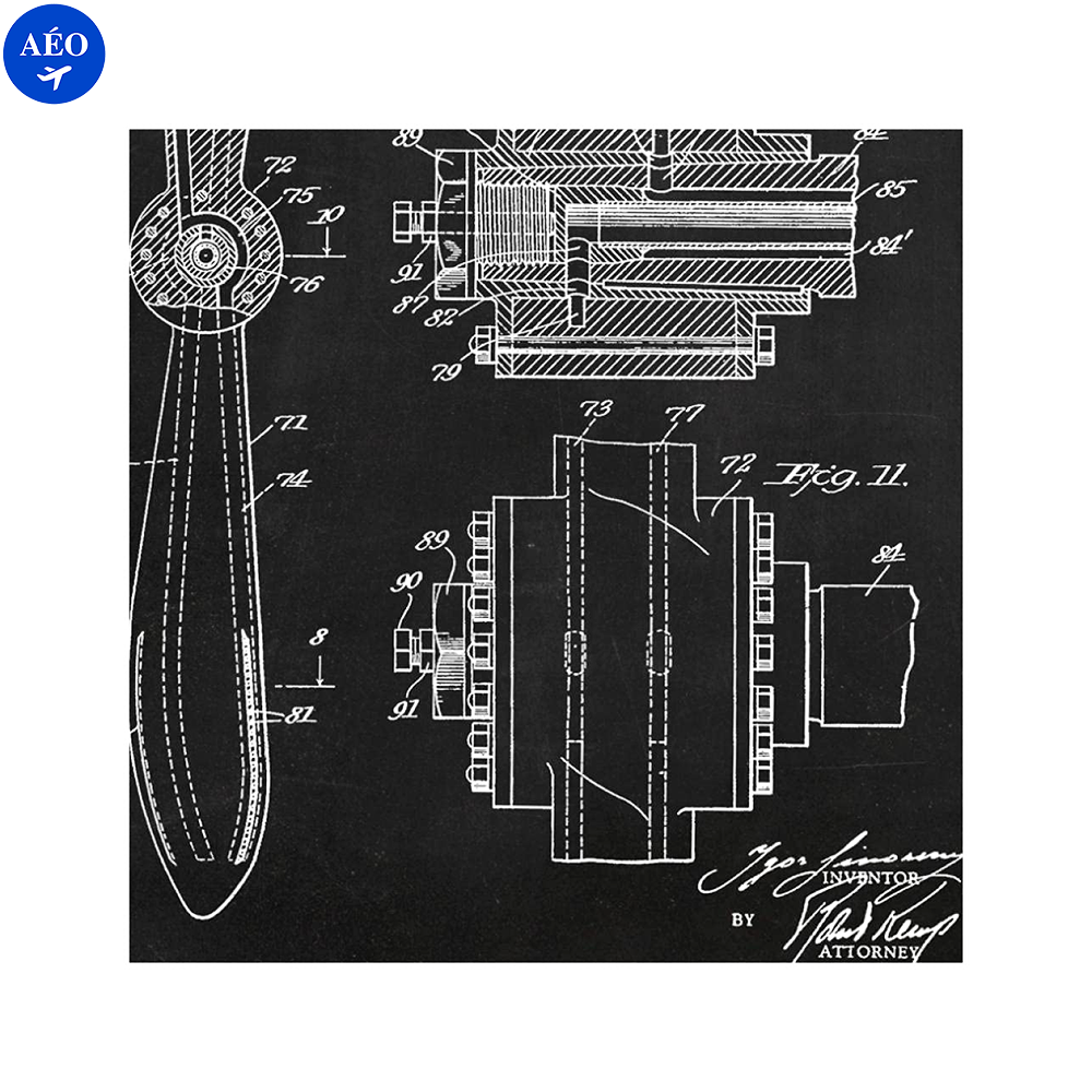 Apportez une touche aéronautique à votre décoration avec cette affiche représentant le brevet d'une hélice d'avion. Affichez votre passion pour les avions avec fierté et élégance.